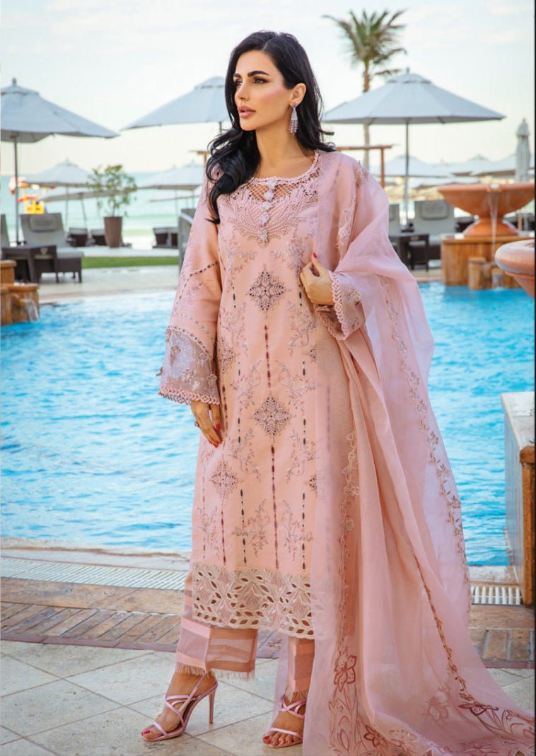 Dyed Organza Kaviya Work Embroidered Sleeve 3D Flowers