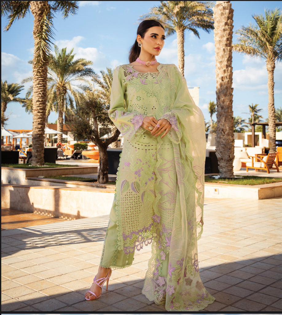 Dyed Organza Embroidered Front Daman